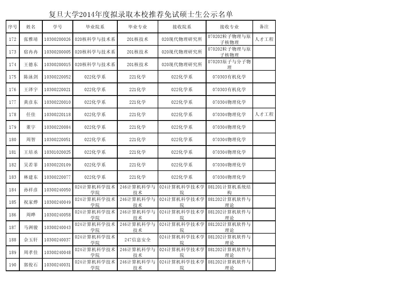 LETOU国际米兰官网2014年度拟招收推荐免试研究生和向外推荐免试研究生公示名单(硕士生)