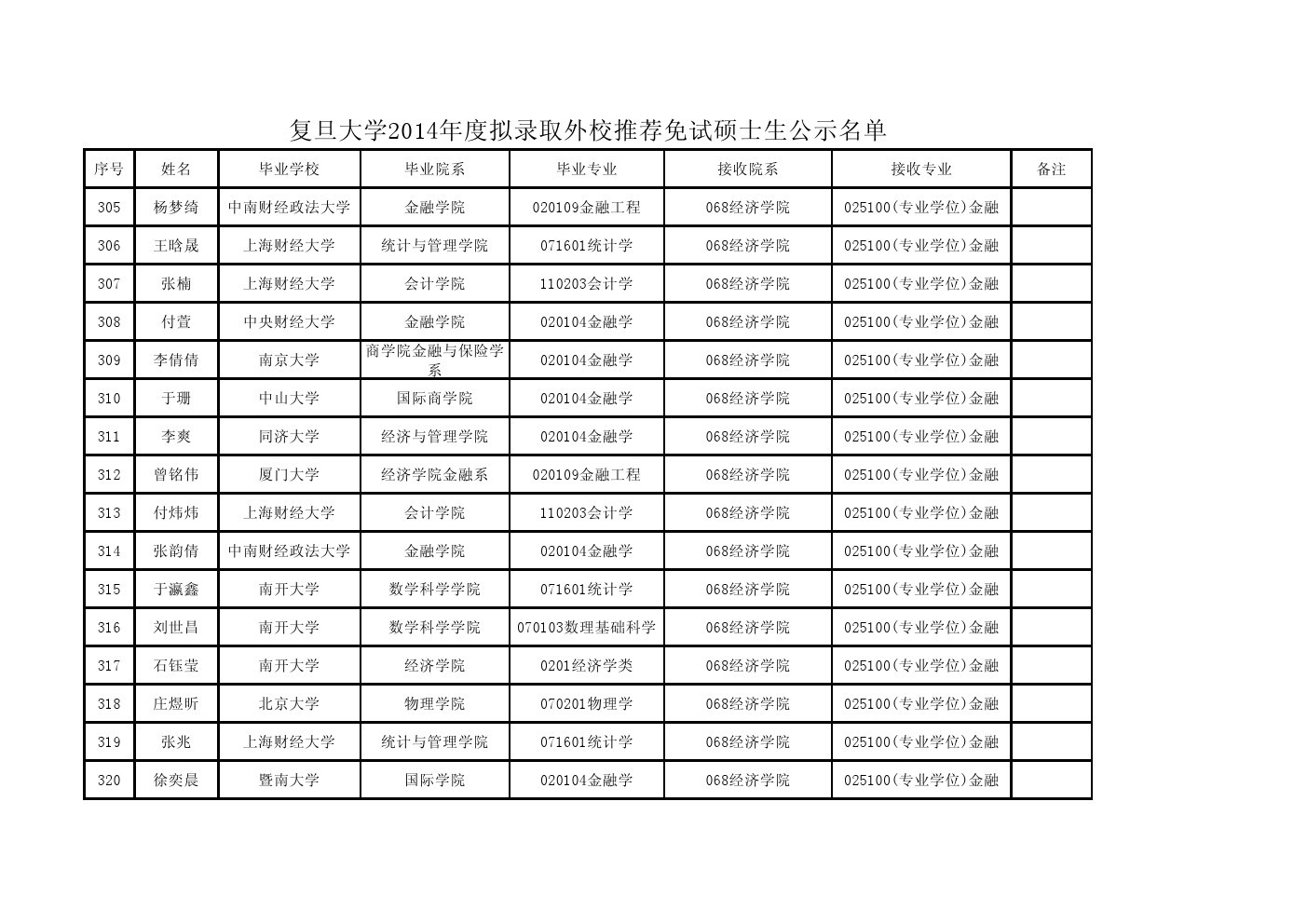 LETOU国际米兰官网2014年度拟招收推荐免试研究生和向外推荐免试研究生公示名单(硕士生)