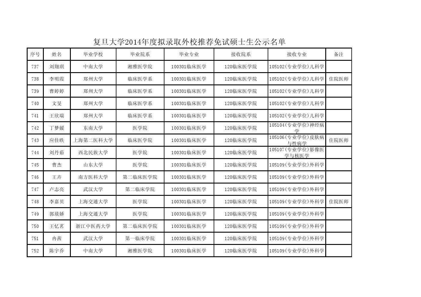 LETOU国际米兰官网2014年度拟招收推荐免试研究生和向外推荐免试研究生公示名单(硕士生)